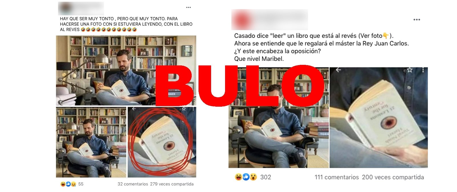 Por lo tanto, no es cierto que Casado esté leyendo el libro al revés, sino que se trata de un montaje.