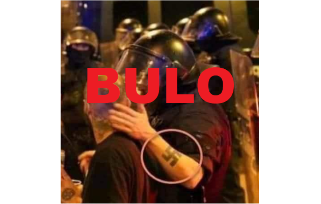 Nos estáis preguntando por una imagen en la que se ve a un mosso y en su brazo un tatuaje de una esvástica. Es un montaje.