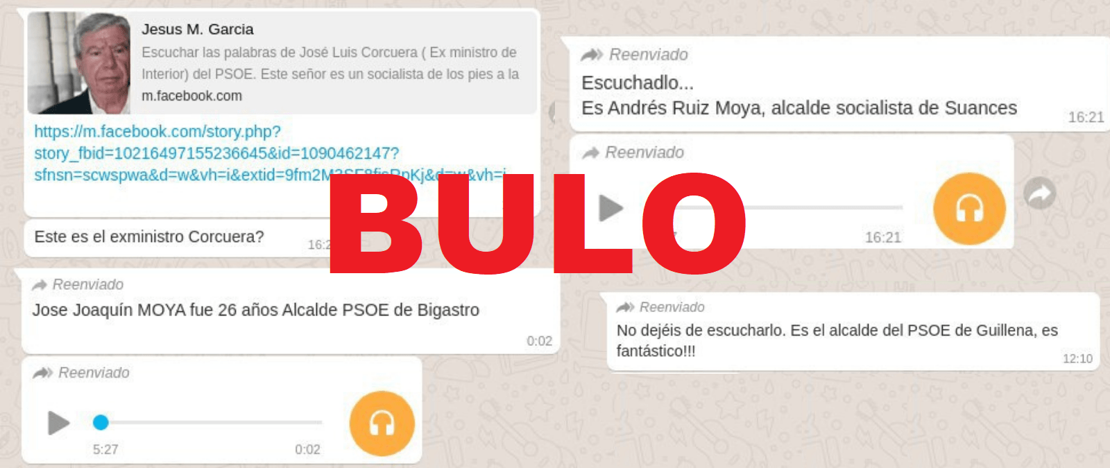 Nos habéis vuelto a preguntar a nuestro servicio de WhatsApp por un audio que se ha viralizado, que critica la gestión realizada por el Gobierno ante la crisis del coronavirus y que se atribuye tanto al exministro del Interior, José Luis Corcuera, como a los alcaldes de Bigastro, Guillena y Suances.