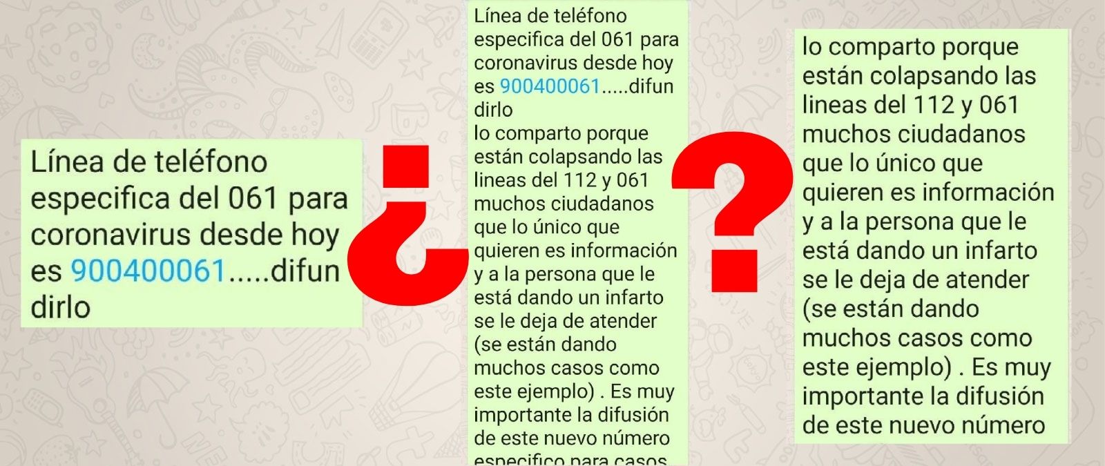 El mensaje de WhatsApp que difundía el número operativo en Andalucía también circuló por esta región, por lo que en ese contenido cuentan que no es un número que esté funcionando en Extremadura. En esa comunidad autónoma no se habilitó un número específico, como sí se ha hecho en otras, sino que mantiene el teléfono de emergencias 112 para la consultas sobre el coronavirus.