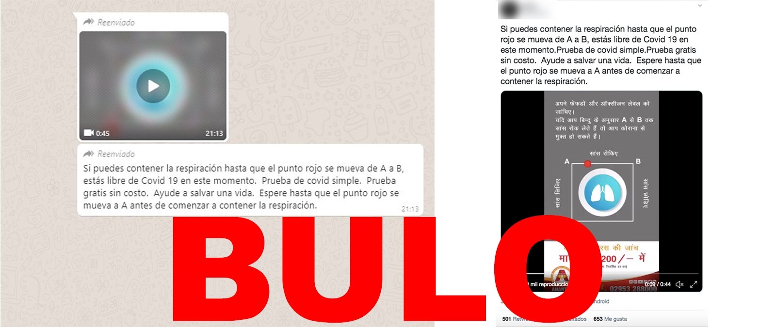 Además, aguantar la respiración como método de diagnóstico de la COVID-19 es un bulo recurrente que ya hemos desmentido en Maldita.es en otras ocasiones. En marzo, se movió una cadena de WhatsApp que no sólo afirmaba esto, sino que también decía que beber agua podía eliminar el coronavirus o que cuando se manifiestan los primeros síntomas de COVID-19, los pulmones de la persona infectada pueden "estar con un 50% de fibrosis". Aquí puedes leer nuestro desmentido al respecto.