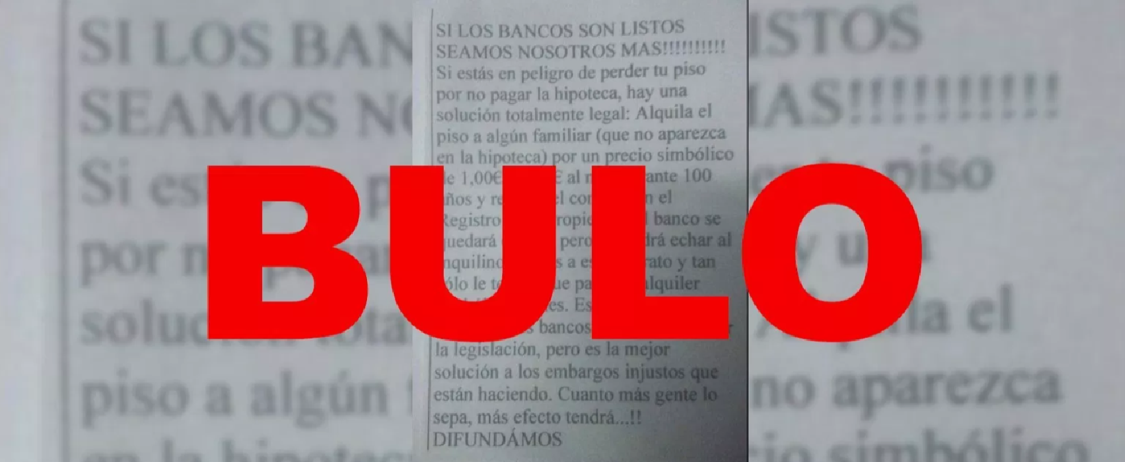 "Si haces lo que dice el bulo, inscribes el contrato en el registro cuando dejas de pagar, o cuando inicia la ejecución, es decir, DESPUÉS de la hipoteca, no tiene ninguna validez, el alquiler no va a evitar la ejecución hipotecaria, la subasta y la enajenación del inmueble."