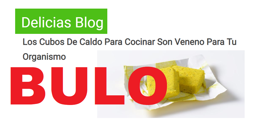 Circulan por las redes algunos posts en los que se advierte del supuesto riesgo para la salud de consumir cubos de caldo concentrados para cocinar como parte de nuestra alimentación: "náuseas, alergias en la piel, vómitos, taquicardia, dolor de cabeza, latidos cardíacos irregulares, mareos e incluso depresión" son algunas de las supuestas consecuencias. También se menciona el alzhéimer. Pero a día de hoy no hay evidencias de estos supuestos efectos, y las que sí existen apuntan a que esto no es así.