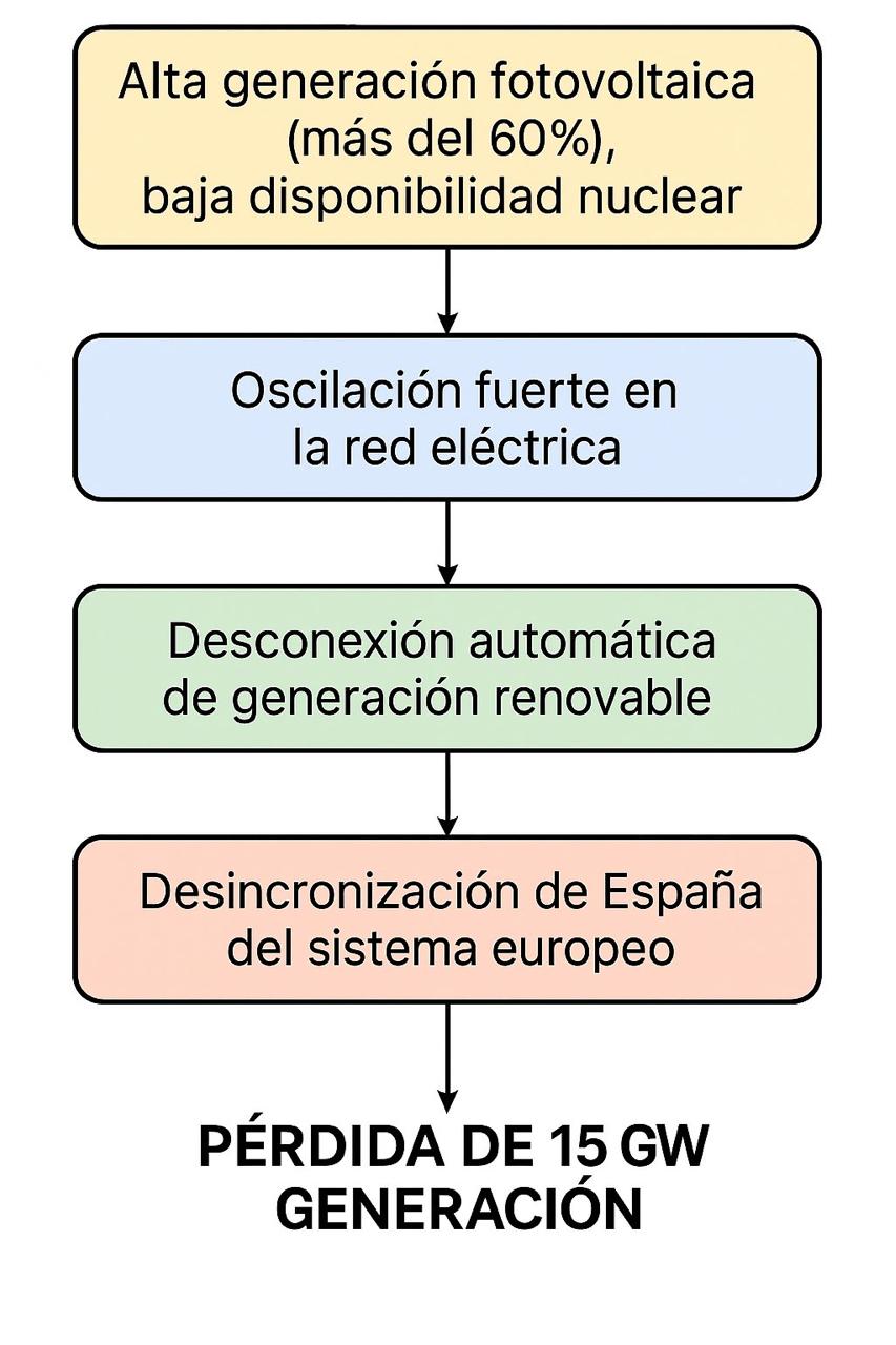 Qué se comparte: el apagón del 28 de abril se produjo por oscilaciones en la red por exceso de renovables y no poder amortiguar con producción nuclear. O bien, que el apagón se produjo por una oscilación de causa desconocida y que una vez ocurrió eso la alta generación renovable no pudo amortiguarla.