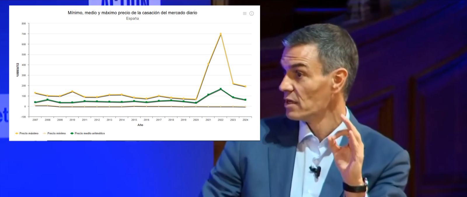 El presidente del Gobierno, Pedro Sánchez, afirmó el 26 de septiembre de 2025 en la Global Progress Action Summit de Londres que desde que asumió su puesto en 2018 hasta 2025 había “conseguido reducir un 50% los precios de la electricidad en España y es gracias a las energías renovables”, sin mencionar ninguna fuente.