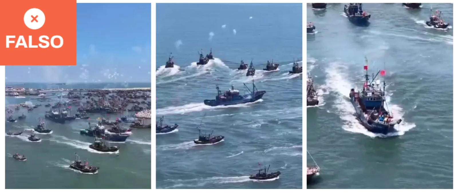 ❌ Este vídeo con una flota de barcos no es de la flotilla de Gaza: son pesqueros en China en 2025