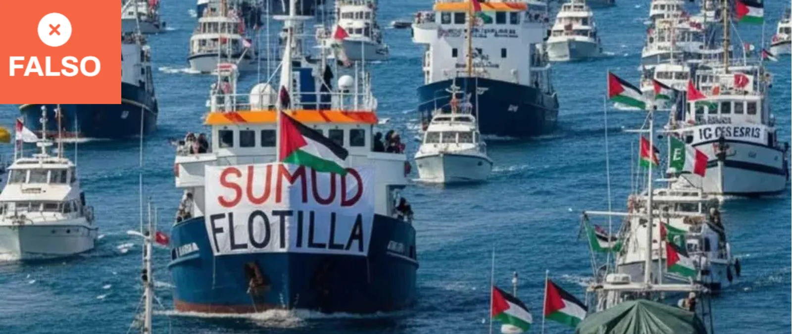 Además, no hay rastro en las redes sociales de la Flotilla o su web de que hayan publicado imágenes así.