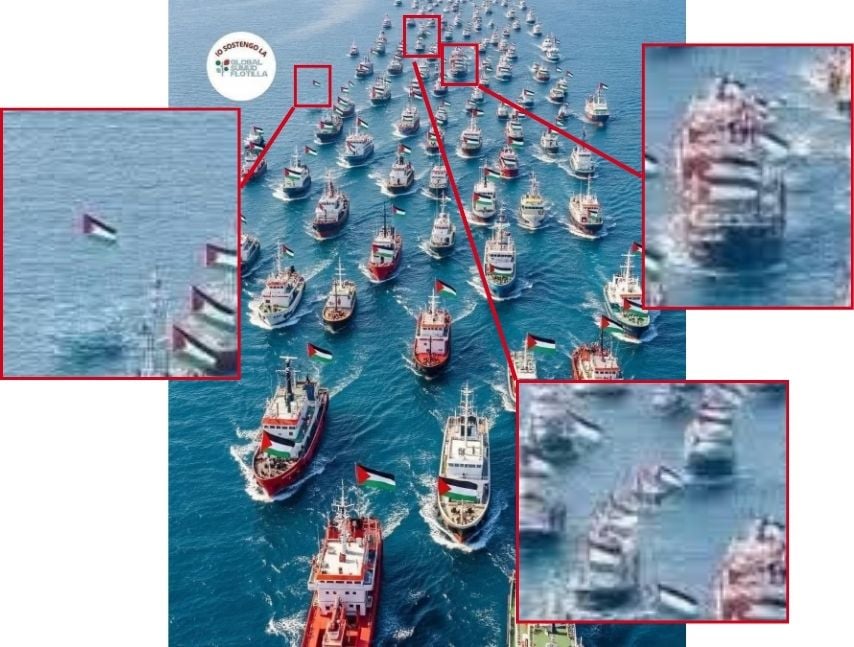 ❌Esta imagen que muestra varios barcos supuestamente de la Sumud Flotilla no es real: un experto señala que está generada con IA