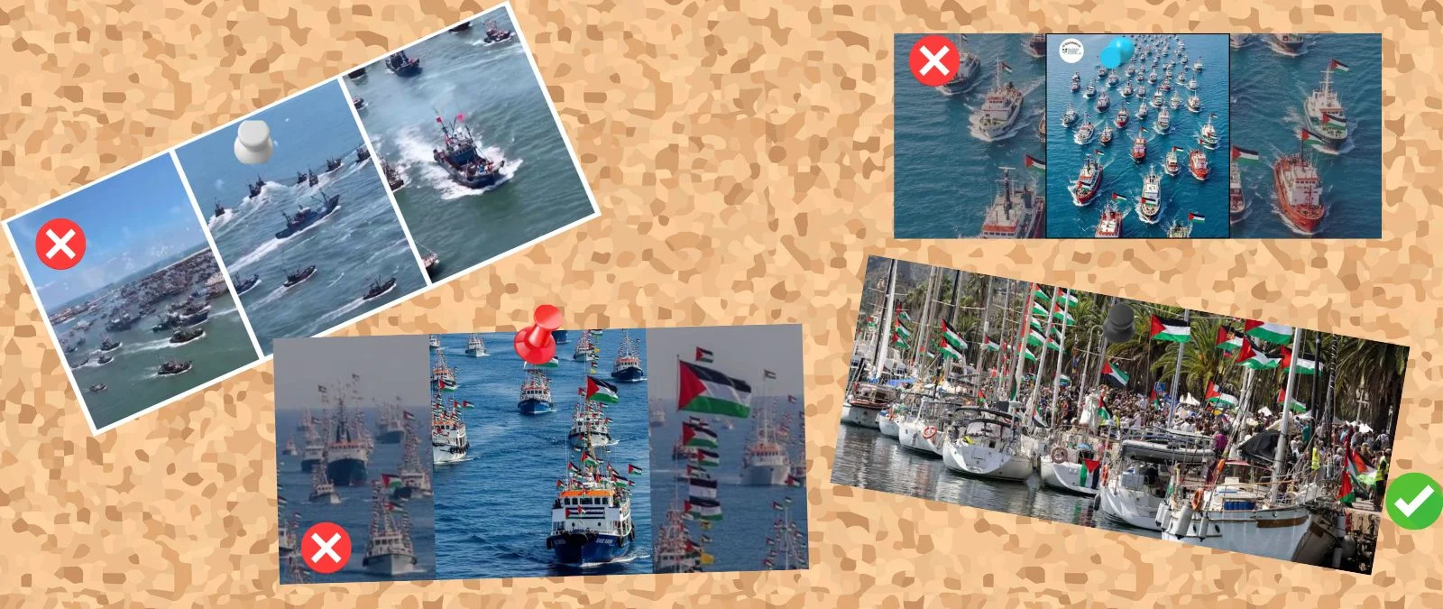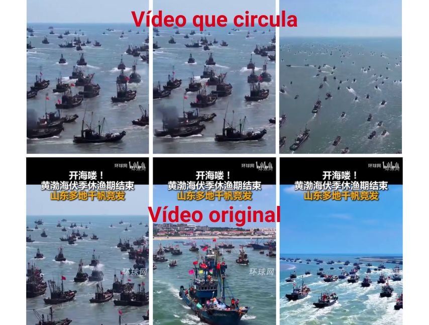 Una búsqueda inversa de las imágenes revela que se trata de una flota de barcos de China al inicio de la temporada de pesca en septiembre de 2025 en la provincia de Shandong. El vídeo ha sido publicado por los canales chinos CGTN o Global Times. Los barcos de la Global Sumud Flotilla, que está rumbo a Gaza desde finales de agosto, son menos numerosos y se pueden distinguir por llevar banderas de Palestina.