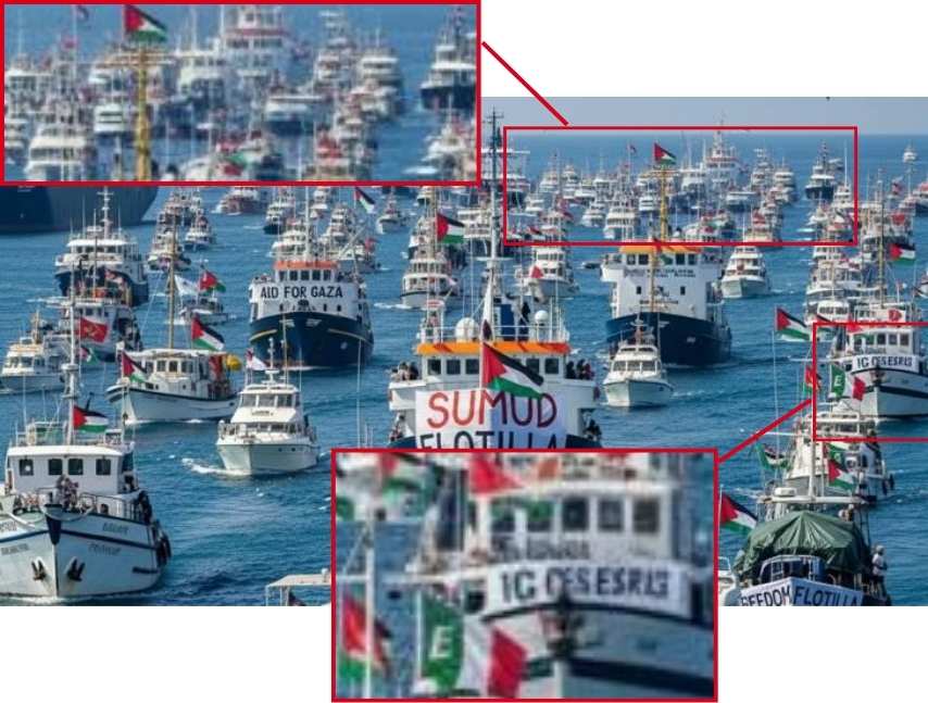 ❌ Esta imagen de una flotilla de barcos con rumbo a Gaza no es real: tiene indicios de haber sido generada con IA