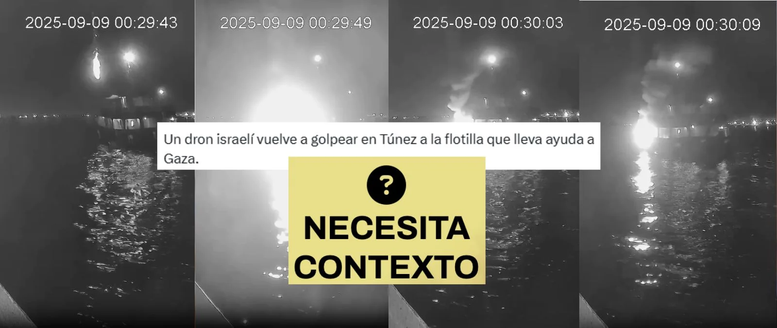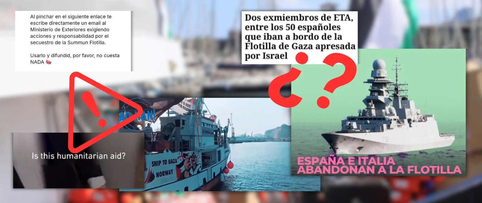 En Maldita.es ya hemos desmentido y contextualizado algunas de las imágenes que han circulado durante la travesía de la Global Sumud Flotilla en su camino hacia Gaza: de vídeos e imágenes de otros sucesos, a contenidos generados con inteligencia artificial o editados.
