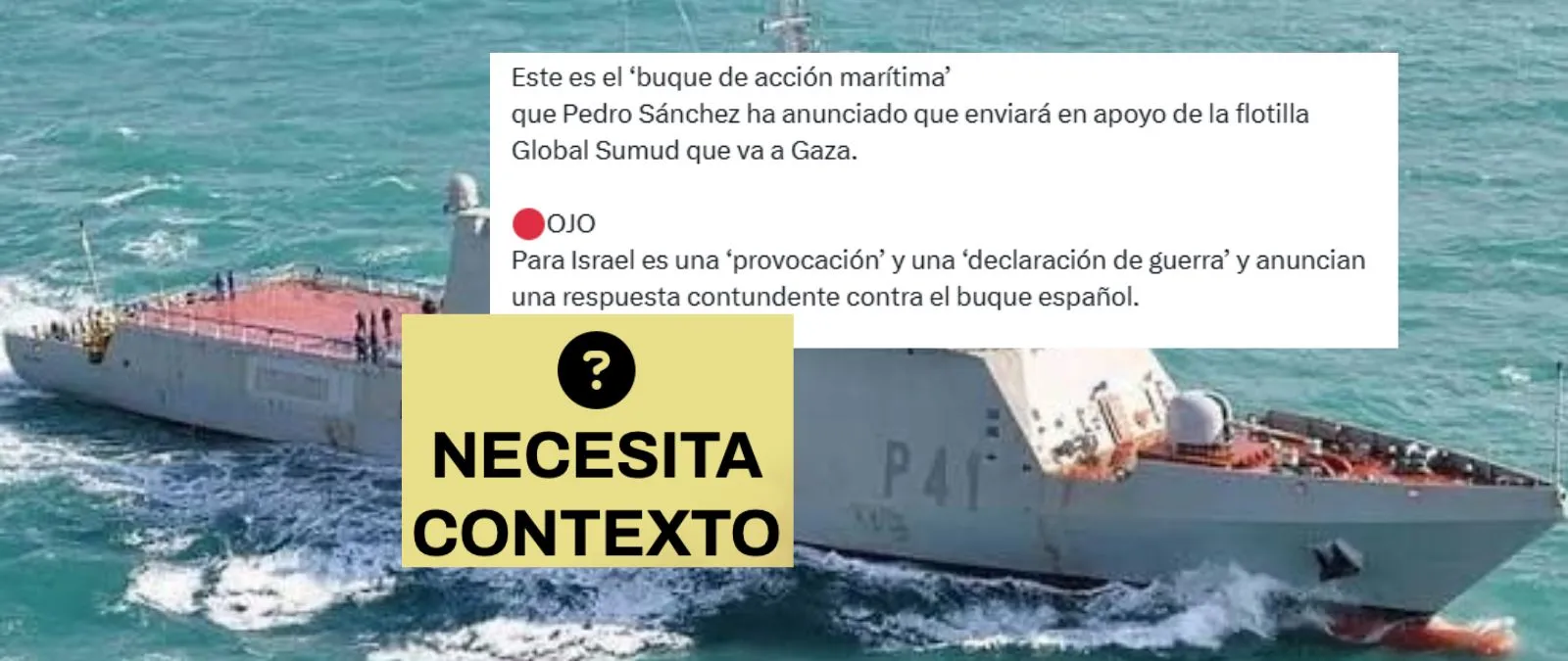 Pedro Sánchez anunció el 25 de septiembre que enviará “un buque de acción marítima equipado” para asistir a la Global Sumud Flotilla. Según RTVE, es el ‘P-46’ o ‘Furor’. Italia también ha mandado dos buques. El Ministerio de Exteriores israelí indicó el 24 de septiembre que “no permitirá que ningún buque entre en zona de combate activo ni permitirá la violación de un bloqueo naval legal”. No hay rastro de que el Gobierno israelí lo haya interpretado como una “provocación” o “declaración de guerra”. Hemos preguntado al Gobierno de Israel por ello y al publicar no hemos recibido respuesta.