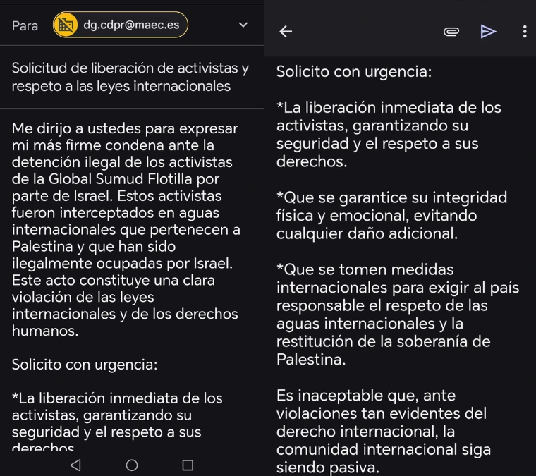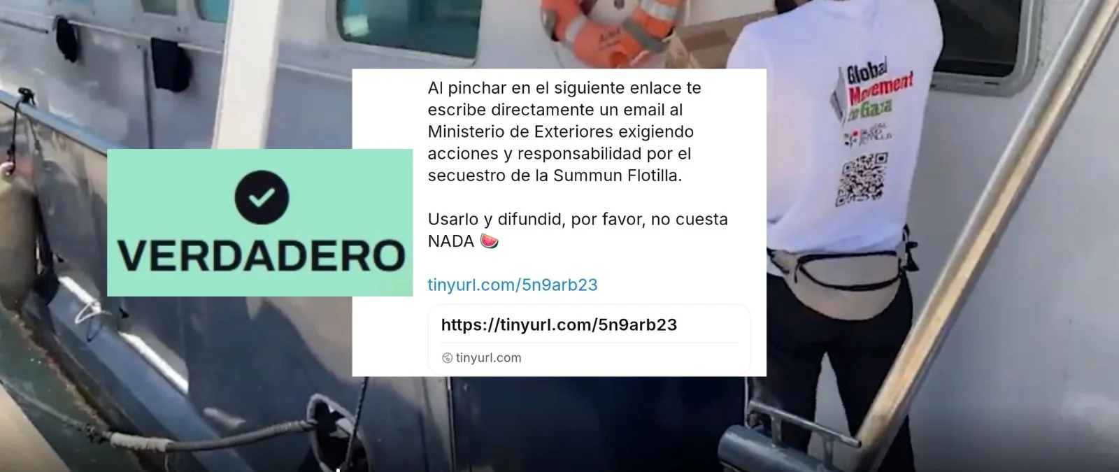 El enlace para enviar automáticamente un mail al Ministerio de Exteriores exigiéndole acciones por el secuestro de la flotilla Sumud es real