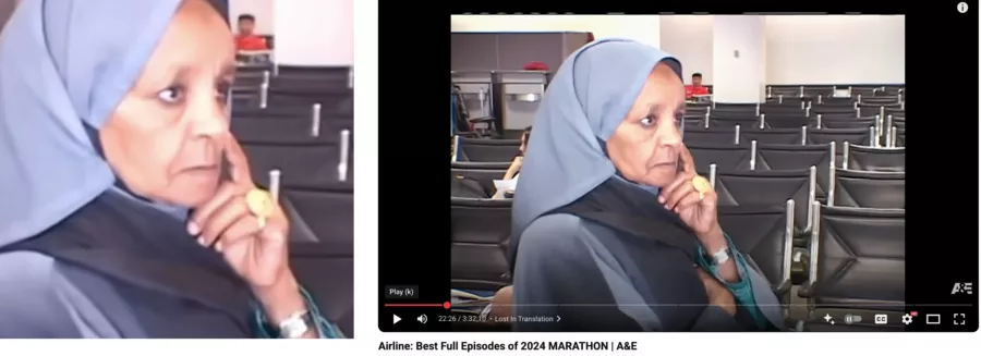 El material de vídeo real corresponde a las imágenes de una mujer con un pañuelo azul en una sala de espera del aeropuerto. La escena pertenece a un programa de televisión llamado “Airline”, que se emitió en el canal Art & Entertainment (A&E) en Estados Unidos. En ella, aparece una trabajadora del aeropuerto ayudando a una pasajera que no habla inglés. Según el análisis de Lead Stories, en el episodio no se menciona a “Torenza” y se grabó en el aeropuerto de Los Ángeles.