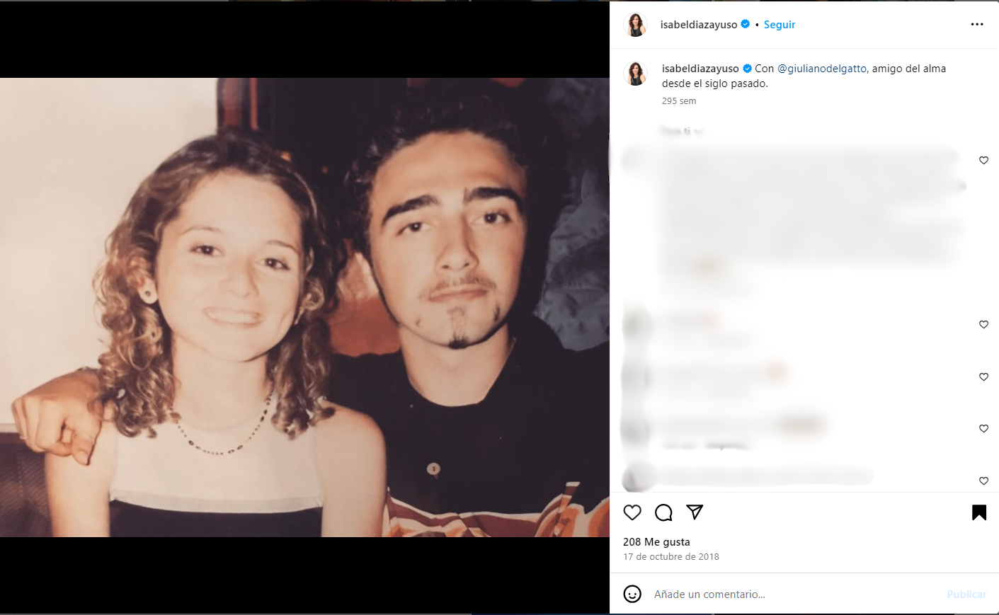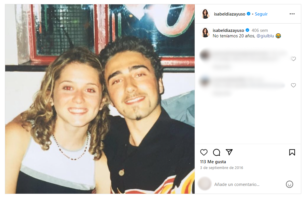Al hacer una búsqueda de la imagen, vemos que Isabel Díaz Ayuso la publicó en su cuenta de Instagram en 2016 con la descripción “no teníamos ni 20 años”. Ahí menciona a un usuario que no es Alvise Pérez.