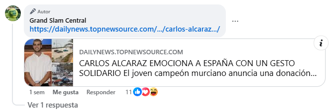 «Carlos Alcaraz dona más del 50% de sus ingresos a programas de alimentación y reconstrucción en las zonas de Murcia y Alicante afectadas por las inundaciones»