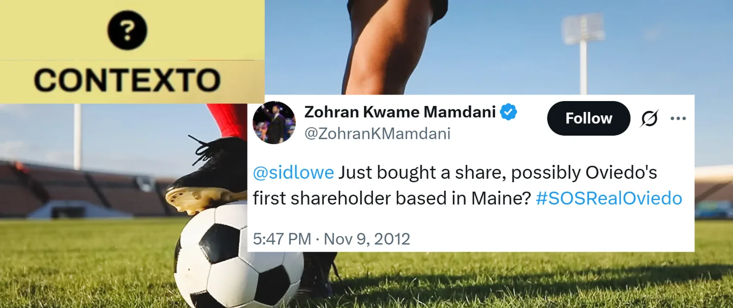 El 9 de noviembre de 2012, el alcalde de Nueva York, Zohran Mamdani, publicó en Twitter (ahora X) que compró una acción del Real Oviedo, coincidiendo con la campaña que lanzó el club para evitar su disolución. Maldita.es contactó al Real Oviedo el 14 y el 17 de noviembre para verificar de forma independiente si Mamdani sigue siendo accionista y en el momento de publicar no hemos recibido respuesta.