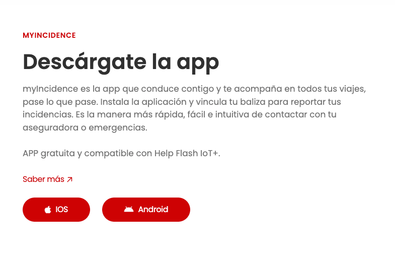 En la web del fabricante Netun se ofrece tanto la luz V16 Help Flash como la aplicación myIncidence. En la página de información de la baliza se anuncia la disponibilidad de la aplicación, recogiendo que al instalar y vincular la baliza se pueden reportar incidencias y “contactar con tu aseguradora o emergencias”. Como se puede ver en el vídeo, la baliza se puede vincular al móvil con un código QR, pero es un paso opcional que no es obligatorio para la utilización de la baliza para señalizar un accidente.