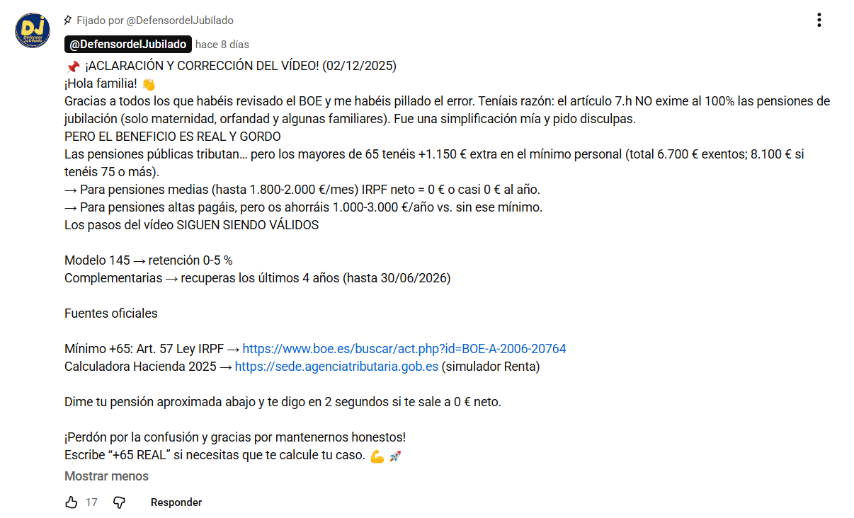 «Si tienes 65 años o más no tienes que pagar IRPF y si ya estás jubilado puedes recuperar hasta los últimos cuatro años»