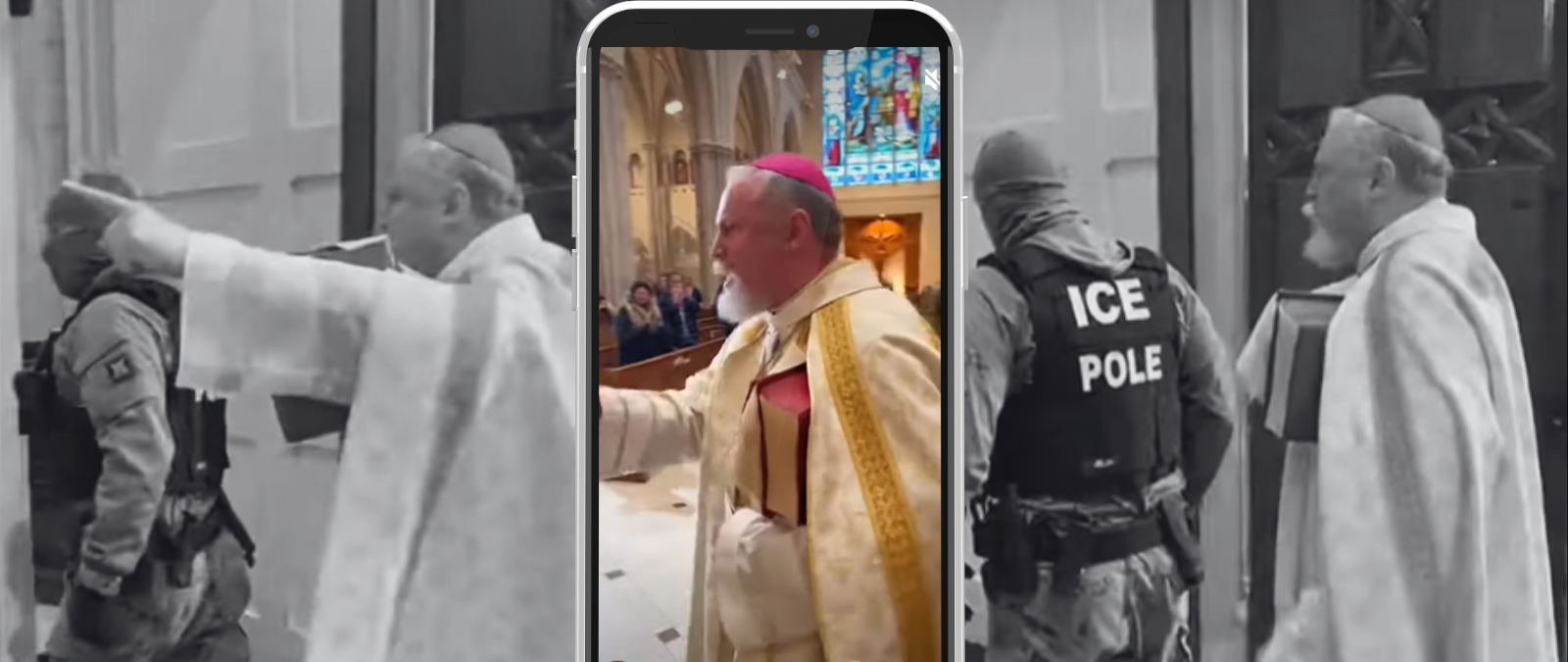 Este vídeo de un sacerdote que expulsa a agentes de ICE de una iglesia y les grita “fuera de esta casa” no es real: ha sido creado con inteligencia artificial