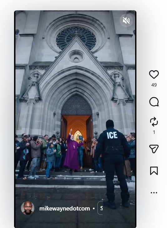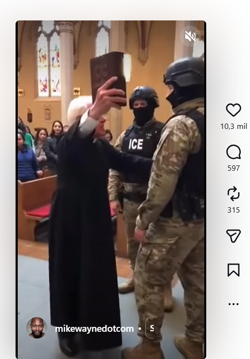 Este vídeo de un sacerdote que prohíbe a agentes de ICE entrar a su iglesia y les grita que su “Dios es el amor” no es real: ha sido creado con inteligencia artificial