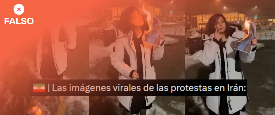 El mismo vídeo se difunde en redes sociales con mensajes que afirman que es de 2022, pero no es antiguo. Al realizar una búsqueda inversa, no encontramos registro de que la grabación se haya publicado antes del 7 de enero de 2026, al contrario de lo que aseguran algunas publicaciones. Como supuesta prueba de que la imagen es antigua, estos usuarios incluyen capturas de foros que tienen fecha de 2022, pero se trata de la fecha de creación del hilo, no de la publicación de la imagen. La propia protagonista de la grabación asegura en su perfil de Twitter (ahora X) que el vídeo se grabó el 7 de enero de 2026 y muestra los metadatos de la imagen. Aunque la grabación tenga lugar en Canadá, la usuaria lo difunde en el contexto de las protestas iraníes contra la República Islámica.