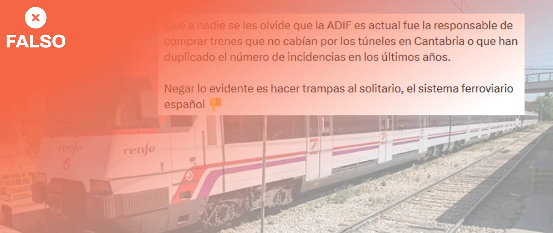 El mensaje de Twitter (ahora X) que se difunde después del accidente ferroviario en Adamuz (Córdoba) menciona el caso de los trenes de Cantabria y Asturias en 2023 que compró Renfe y cuyas medidas no se correspondían con los túneles de la red de Cercanías.