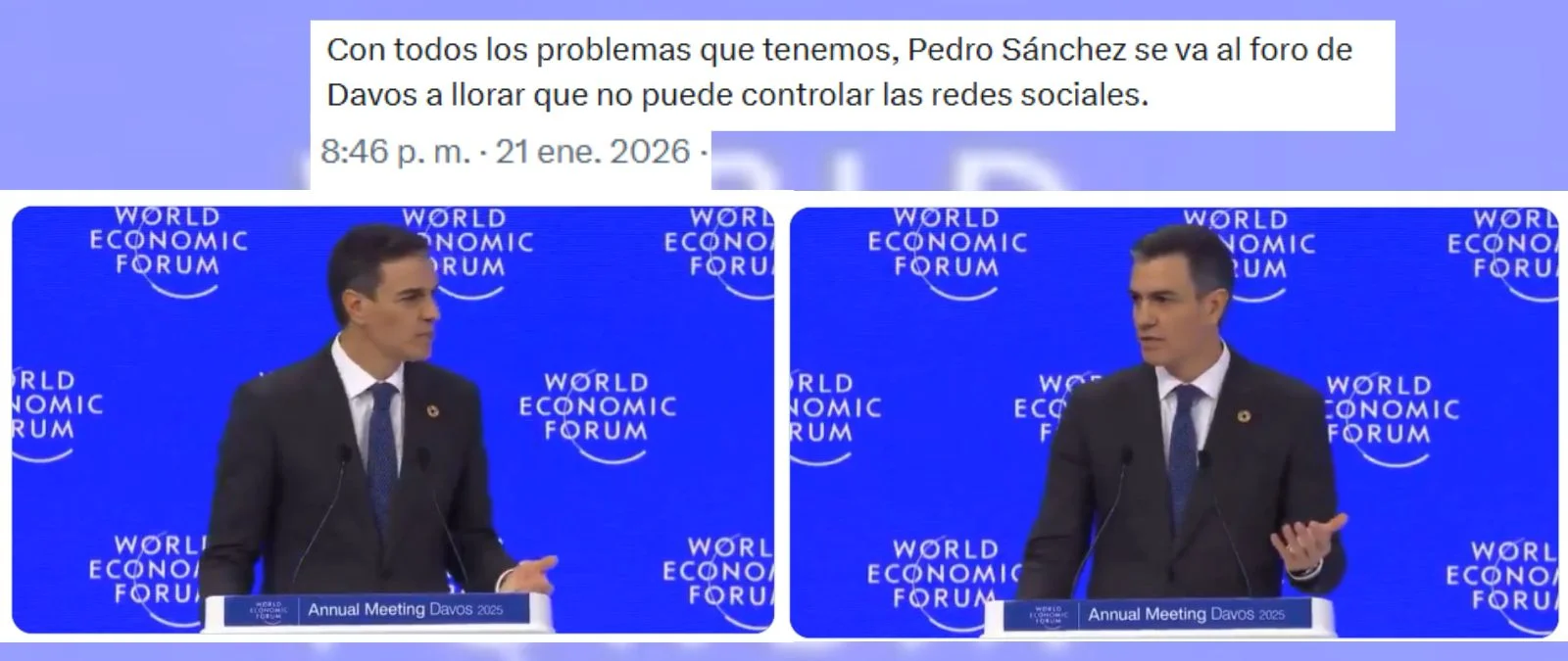 Con todos los problemas que tenemos, Pedro Sánchez se va al foro de Davos a llorar que no puede controlar las redes sociales.