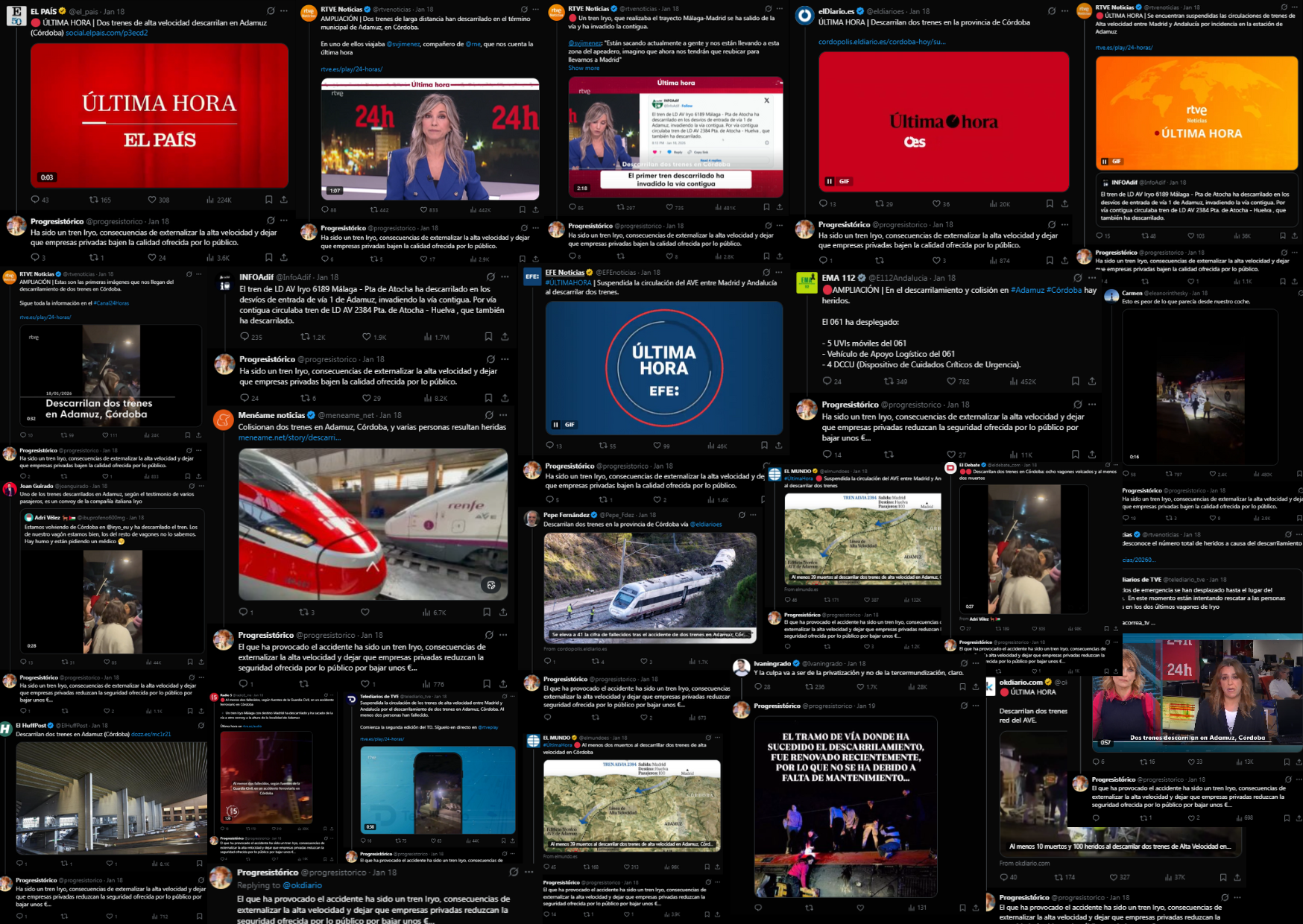 A las 13:00 del 19 de enero de 2026, existen 19 tuits de la cuenta oficial de información de Adif avisando de “incidencias” o “averías” en Adamuz (Córdoba) anteriores al accidente ferroviario del 18 de enero. El primer tuit sobre una “incidencia de pantógrafo/catenaria entre Alcolea de Córdoba y Adamuz” es 2022, aunque ya en 2017 Adif respondió a una usuaria que había una “incidencia en la infraestructura entre Villanueva y Adamuz”. Contenidos publicados tras el accidente y acompañados de capturas de estos tuits afirman que Adif “parece que los está borrando”, pero a fecha de publicación de este artículo, todos los tuits que recogen en las capturas siguen publicados.