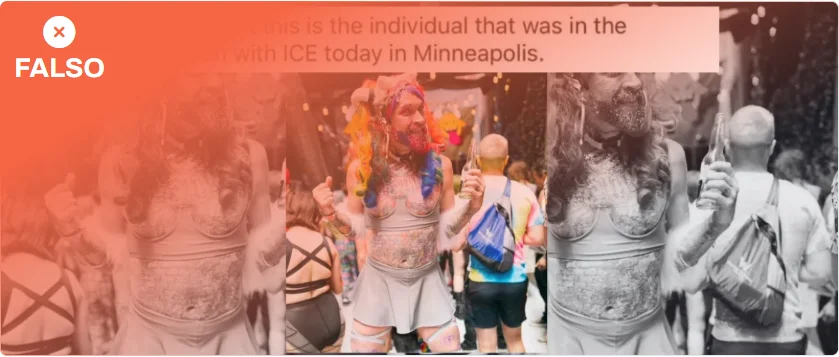 También han circulado imágenes que supuestamente muestran a Alex Pretti antes del incidente. Una foto de un hombre tatuado con falda, corsé y peluca de colores circula con mensajes como: “Este es el individuo que formó parte de la situación hoy con ICE en Minneapolis”, en referencia al asesinato del enfermero.