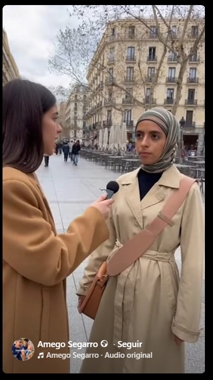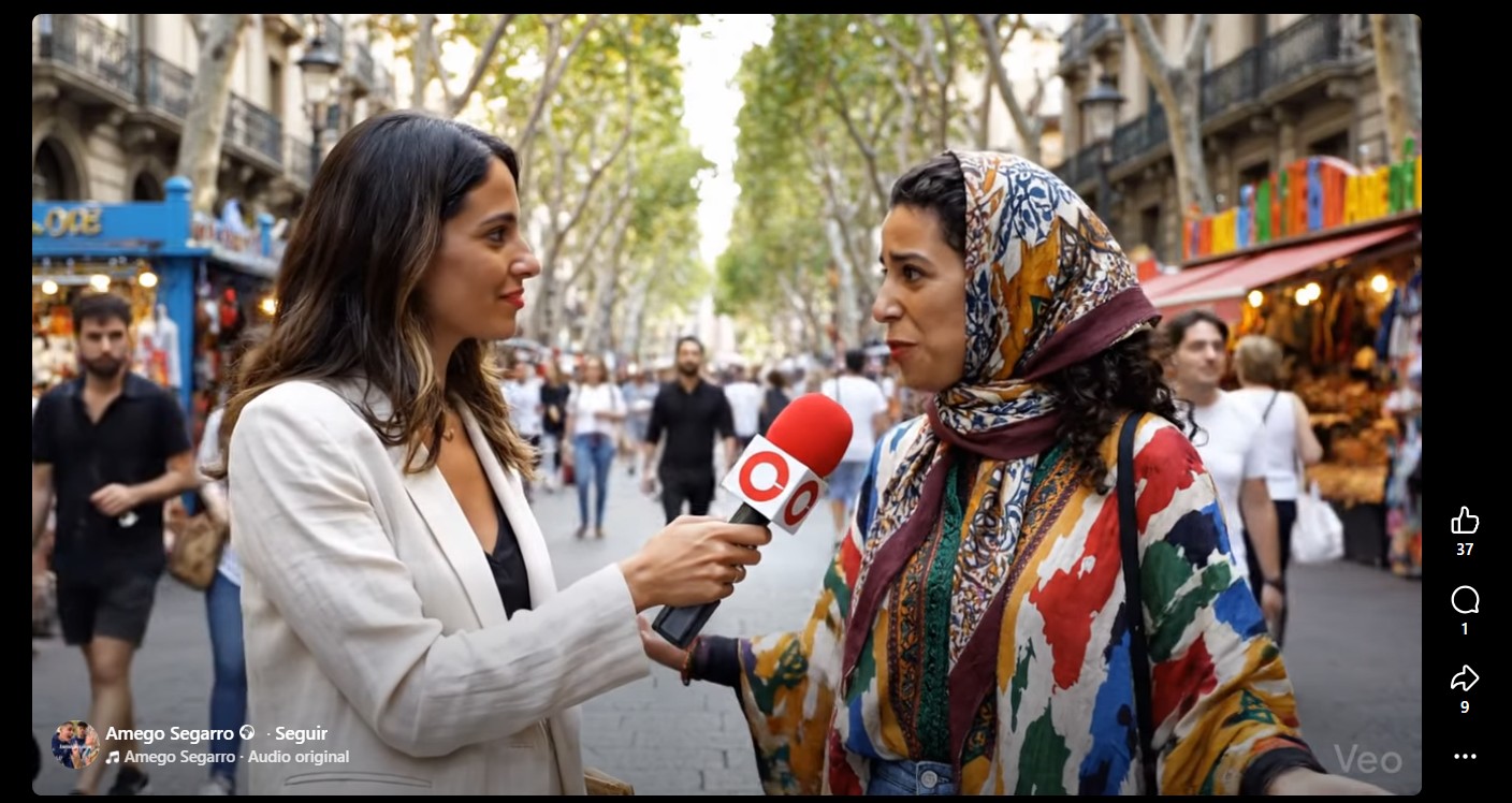 Vídeo que circula con indicios de haber sido creado con IA. Captura del vídeo que muestra indicios de IA en una persona saliendo desde otra y errores en manos.