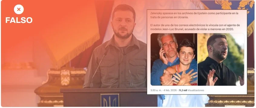 Los mensajes de redes que comparten este montaje aseguran que Zelenski “aparece en los archivos de Epstein como participante en la trata de personas en Ucrania”. En la biblioteca de documentos desclasificados del Departamento de Justicia de EEUU, “Zelensky” aparece al menos en 35 archivos. Sin embargo, a 4 de febrero no hay pruebas que vinculen directamente al presidente con una trata de personas en Ucrania. Además, como ya te contamos en Maldita.es, que un nombre aparezca entre los documentos no quiere decir que se le acusa de cometer algún delito.