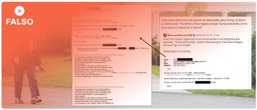 No, este correo de Epstein diciéndole a un interlocutor que no lleve chicas negras porque “Trump estará allí” no es real: no aparece entre los correos publicados por el Departamento de Justicia de EEUU