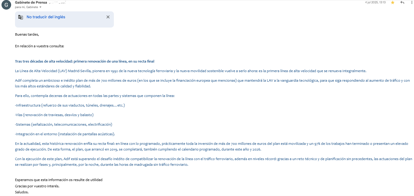 Maldita.es ya preguntó a ADIF en julio de 2025 por la fase de ejecución de estas obras y las actuaciones que se estaban haciendo por una información sobre la financiación europea de la red de alta velocidad en España y en aquel entonces respondieron que “un 97% de los trabajos” habían terminado o presentaban un “elevado grado de ejecución”. ADIF indicó a Maldita.es que estas actuaciones incluyeron el “refuerzo de sus viaductos, túneles o drenajes”, la renovación de las vías, sistemas y la “integración con el entorno”.