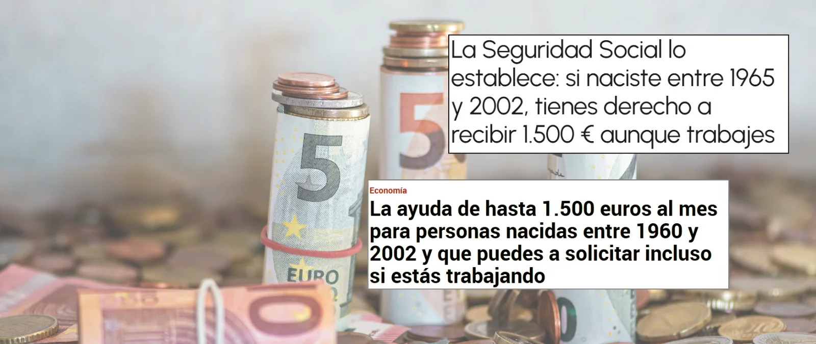 Publicaciones de finales de 2025 y principios de 2026 dicen que las personas nacidas entre 1960 y 2002 tienen derecho a recibir “una ayuda de hasta 1.500 euros al mes” aunque tengan trabajo. La ayuda a la que se refieren los contenidos es la del Ingreso Mínimo Vital, una prestación económica aprobada en diciembre de 2021 dirigida a personas con ingresos muy bajos y que obliga a cumplir una serie de requisitos para poder acceder a la misma. Como se indica en la página web del Ministerio de Inclusión destinada al IMV, pueden solicitarlo las personas de “23 a 65 años con residencia legal y efectiva en España”. Teniendo en cuenta que estamos en el año 2026, las personas nacidas entre 1961 y 2003 pueden tener acceso a esta prestación. No obstante, la ley recoge algunas excepciones donde los menores de 23 pueden solicitarla, como menores emancipados con hijos/as a cargo o jóvenes de entre 18 y 22 años que provengan de centros residenciales de protección de menores.