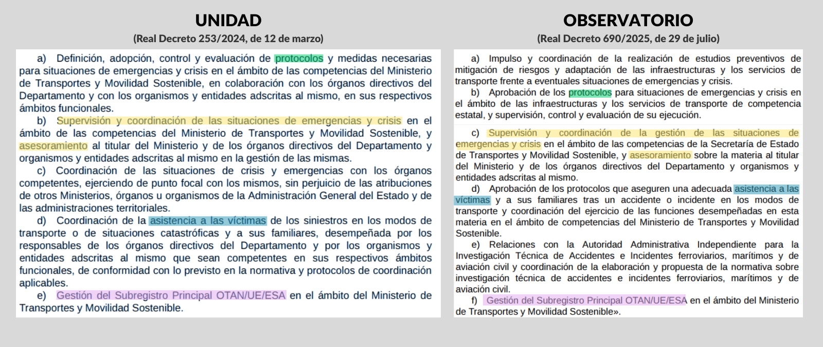 Según Óscar Puente, sí. Según su gabinete, ahora “asume además nuevas funciones en materia de atención a víctimas y coordinación con autoridad de investigación”. Según los reales decretos que regulan cada una, mantienen funciones parecidas, pero el del actual Observatorio cita explícitamente: “Impulso y coordinación de la realización de estudios preventivos de mitigación de riesgos y adaptación de las infraestructuras y los servicios de transporte frente a eventuales situaciones de emergencias y crisis”.