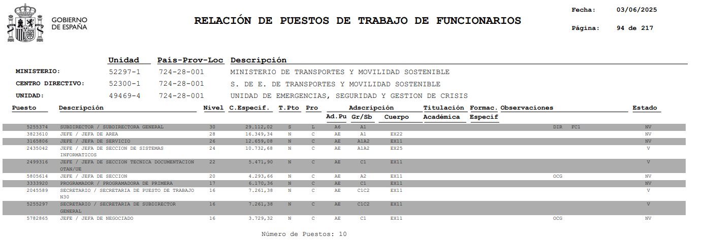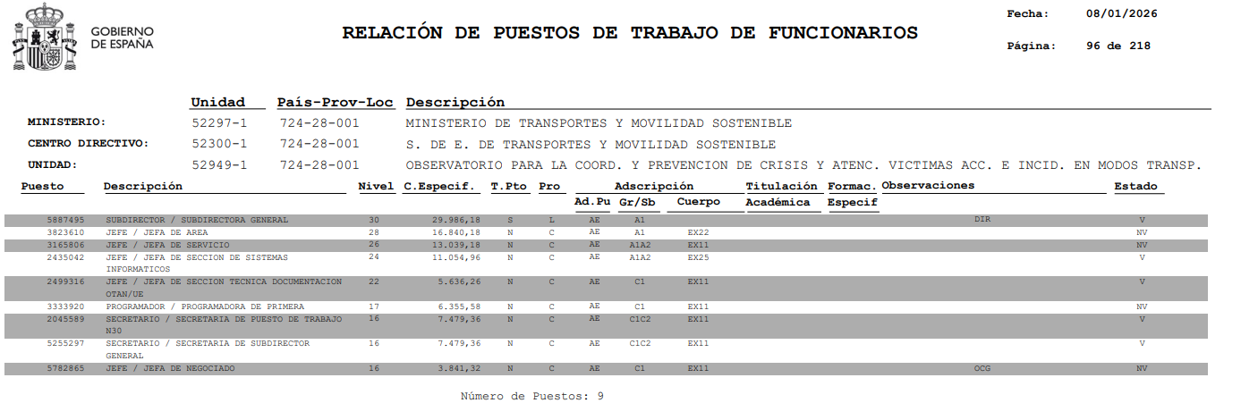 A 8 de enero de 2026, según los datos de Transportes, están ocupados los puestos de jefe de área, jefe de servicio, jefe de negociado, programador de primera y uno de administrativo. Maldita.es ha preguntado al departamento qué funciones realiza cada una de estas personas, así como las que les corresponderían a los cinco puestos que no tienen trabajador, pero no tenemos respuesta.