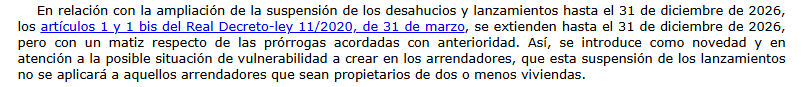 Captura del preámbulo en el que se indica cuál es la “novedad” en la suspensión de desahucios.