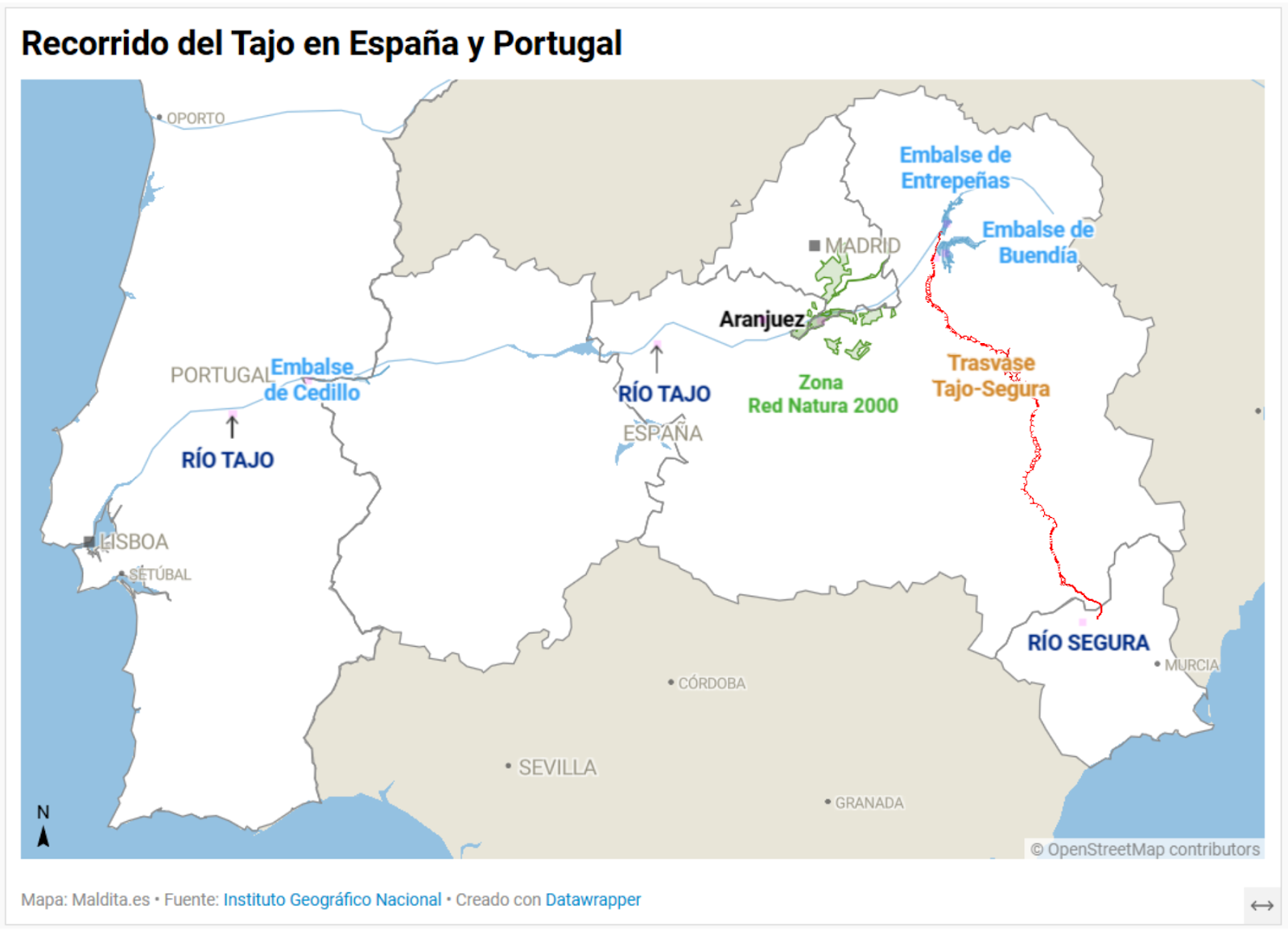 Sin embargo, “las cantidades que se trasvasan están dictaminadas por las reglas de explotación y estas, hasta el día de hoy, no han sufrido ninguna modificación”, indica la experta. “Pudiera ser que los volúmenes trasvasables se redujeran, pero hasta el momento actual ese cambio de reglas no se ha producido”, coincide la Confederación Hidrográfica del Tajo en respuesta a Maldita.es.