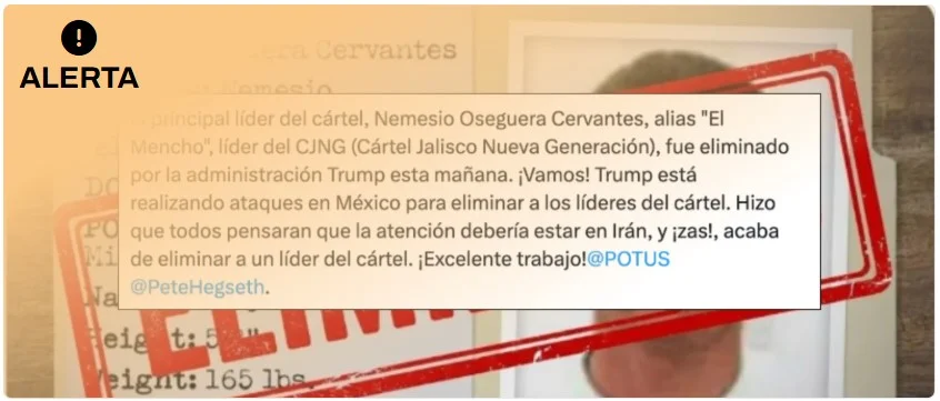 Joaquín ‘El Chapo’ Guzmán e Ismael ‘El Mayo’ Zambada, exlíderes del Cartel de Sinaloa, no fueron detenidos bajo la administración de Donald Trump. ‘El Chapo’, que fue detenido por primera vez en 1993, fue capturado definitivamente en el año 2016, cuando Barack Obama ejercía como presidente de Estados Unidos. El 19 de enero de 2017, un día antes de que Trump accediese a la presidencia en su primer mandato, ‘El Chapo’ fue extraditado a una prisión estadounidense. Por otro lado, ‘El Mayo’ fue detenido el 25 de julio de 2024 bajo la administración de Joe Biden. En el caso de Nemesio Oseguera ‘El Mencho’, líder del Cartel de Jalisco Nueva Generación, México lideró una operación que, con apoyo de la inteligencia estadounidense, finalizó con la muerte del narcotraficante el 22 de febrero de 2026. Cuidado con los contenidos que dicen que 'El Mencho' fue "eliminado por la administración Trump": el operativo fue planeado y ejecutado por México, con el apoyo de la inteligencia de EEUU![]() La operación en la que murió Nemesio Oseguera Cervantes, alias ‘El Mencho’, fue liderada, planeada y ejecutada por fuerzas del Estado mexicano. Así lo explicó la Secretaría de la Defensa Nacional en México a través de un comunicado el 22 de febrero. Afirmó que la acción militar en la que murió el líder del Cártel de Jalisco Nueva Generación se desarrolló como una operación interna de seguridad en el municipio de Tapalpa. Este organismo añadió que para la ejecución de esta operación “se contó con información complementaria” de Estados Unidos “dentro del marco de coordinación y cooperación bilateral”. Algo que también confirmó el 23 de febrero la secretaria de prensa de la Casa Blanca, Karoline Leavitt. La Embajada de México en Estados Unidos también publicó un post en Twitter (ahora X) calificando de “falsa” una publicación que difunde que ‘El Mencho’ “fue eliminado por Estados Unidos”. En este mensaje inciden en que el operativo militar “fue planteado y ejecutado por las Fuerzas Especiales Mexicanas”. No, esta imagen de varios incendios simultáneos en la ciudad mexicana de Vallarta no es real: está generada con inteligencia artificial![]() Esta imagen que supuestamente muestra varios incendios simultáneos en la ciudad mexicana de Vallarta tras la muerte del narcotraficante ‘El Mencho’ no es real. Se trata de una imagen generada con inteligencia artificial (IA). En la esquina inferior derecha aparece la marca de agua de Gemini, la IA de Google. Además, el Gobierno de Jalisco publicó el 22 de febrero esta imagen en Twitter (ahora X), junto a otras dos, para alertar sobre contenidos falsos que están circulando a raíz de los disturbios por la muerte del líder del Cártel de Jalisco Nueva Generación. ![]() |