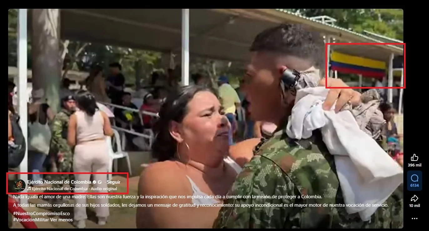 Este vídeo de una madre abrazando a su hijo soldado no corresponde con alguien que estuvo en los enfrentamientos ocurridos por la muerte de Nemesio Oseguera Cervantes, alias ‘El Mencho’, líder del Cártel de Jalisco Nueva Generación (CJNG). El vídeo es de un miembro del ejército de Colombia. Se puede comprobar con una búsqueda inversa del vídeo, que te lleva a la página de Facebook del Ejército Nacional de Colombia, que difundió el clip. También fue publicado en la cuenta oficial de Instagram de la institución el 2 de enero de 2026. Además, al fondo del vídeo aparece una bandera de Colombia.