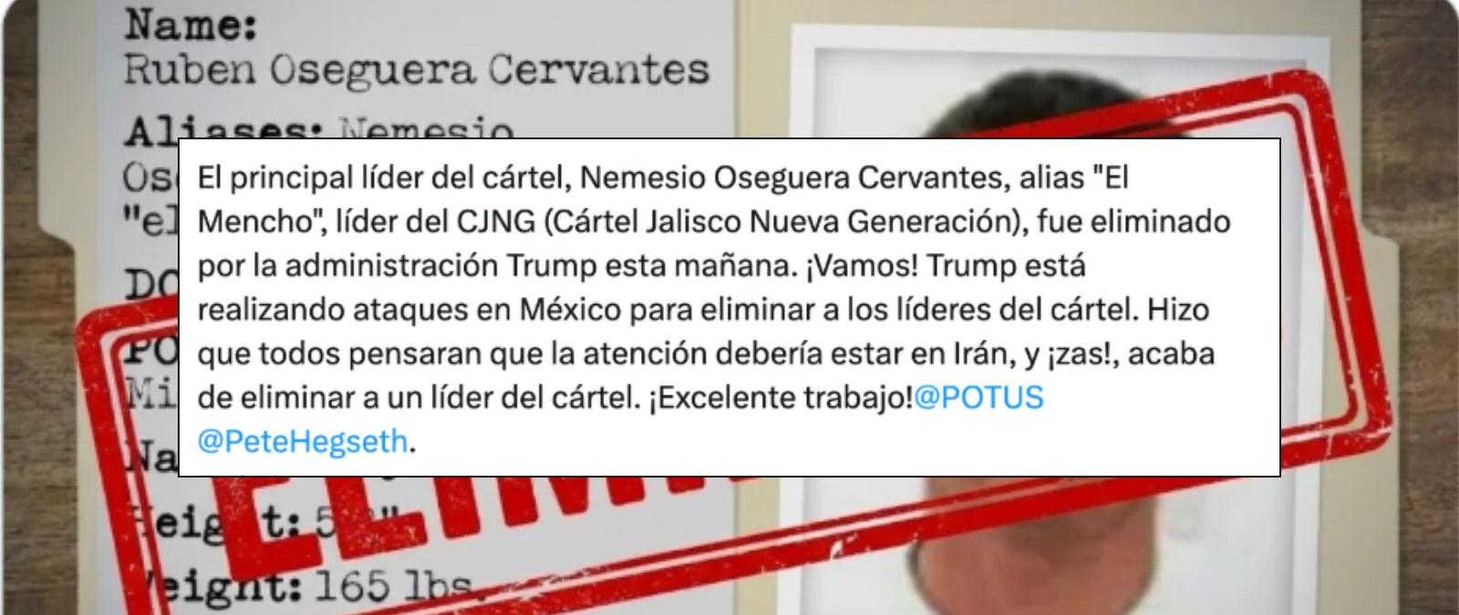 Cuidado con los contenidos que dicen que 'El Mencho' fue "eliminado por la administración Trump": el operativo fue planeado y ejecutado por México, con el apoyo de la inteligencia de EEUU