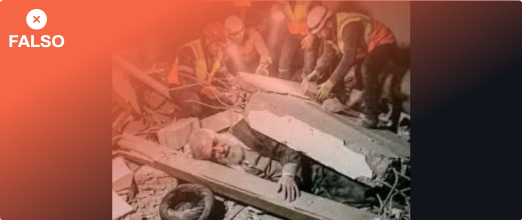 Esta imagen que supuestamente muestra al ayatolá iraní Alí Jameneí, entre escombros tras el bombardeo de Estados Unidos e Israel contra Irán, tiene indicios de haber sido creada con inteligencia artificial (IA) y el propio Google la marca como “creada con la IA de Google” al hacer una búsqueda inversa. Por ejemplo, uno de los supuestos rescatistas que aparecen en la imagen tiene los dedos difuminados, a Jameneí le falta la oreja y su cuerpo parece intacto pese a estar cubierto de escombros. Además, no se ha publicado ninguna imagen del cuerpo de Jameneí por parte de medios ni fuentes oficiales después de los ataques en los que falleció, solo la televisión israelí Channel 12 dijo que el primer ministro israelí, Benjamin Netanyahu, y el presidente de EEUU, Donald Trump, vieron una foto del cadáver, pero la imagen no se ha hecho pública.
