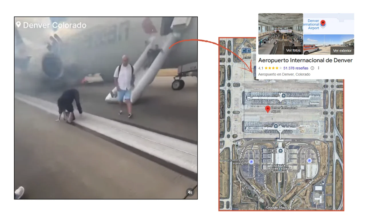 Este vídeo que muestra varias personas siendo evacuadas de un avión es real, pero no está grabado en el Aeropuerto Internacional de Ben Gurión (Israel) en el contexto de los ataques entre EEUU, Israel e Irán. Las imágenes son de un incendio en el Aeropuerto Internacional de Denver (Estados Unidos) el 26 de julio de 2025. A través de una búsqueda inversa del vídeo, detectamos varias publicaciones que comparten la grabación en esa fecha ubicándose en Denver, la capital de Colorado, junto a mensajes que se trata de los pasajeros fueron evacuados por “una falla en el tren de aterrizaje”.