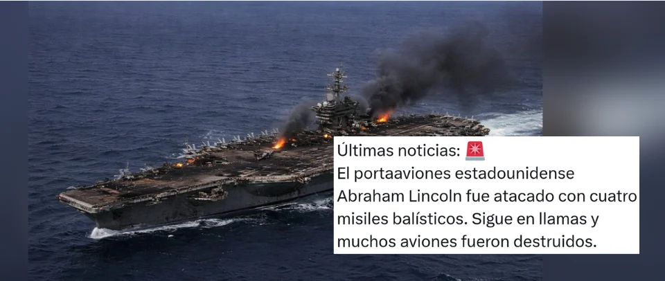 «Se ha hundido el portaviones estadounidense USS Abraham Lincoln como se ve en estas imágenes»