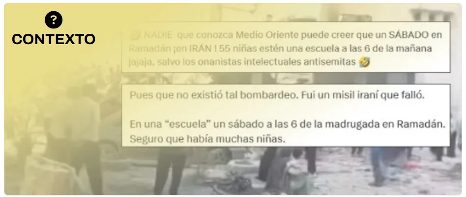 El sábado 28 de febrero una escuela situada al sur de Irán, en la ciudad de Minab, fue destruida dejando al menos 160 muertos. Tras conocerse la noticia, algunas publicaciones pusieron en duda que el colegio estuviera lleno de niñas un sábado y en pleno Ramadán. Pero en Irán el sábado es un día laborable normal en el que las escuelas están abiertas y los alumnos acuden a clase. El catedrático de Estudios Árabes e Islámicos de la Universidad de Alicante Luis F. Bernabé Pons explica a Maldita.es que la semana laboral en Irán “es de sábado a miércoles, correspondiendo jueves y viernes a lo que sería nuestro fin de semana”. Un apunte que también hace el licenciado en Filología Árabe Francisco Javier Carreras: “La semana laboral comienza el sábado”. Y apunta a que, aunque “no es el caso de Irán”, en otros países musulmanes los días no lectivos son viernes y sábado.
