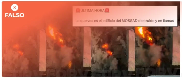 Este vídeo es del 22 de noviembre de 2024 y muestra un ataque israelí a un edificio de Chiyah, en el sur de los suburbios de Beirut (Líbano), como publicaron The New York Times, The Australian, N+ o Roya News. Por tanto, no es un ataque de Irán a Israel o de Israel a Irán, como se difunde en marzo de 2026. Tampoco es de las Fallas de Valencia de 2026, como afirma Grok, la inteligencia artificial de Twitter (ahora X).