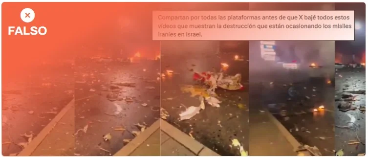 En Maldita.es ya desmentimos este otro vídeo de 2025 tras los ataques iraníes a Israel que circula ahora en redes con mensajes que afirman falsamente que son imágenes actuales, de marzo de 2026, grabadas en el contexto de la escalada militar en Oriente Medio.