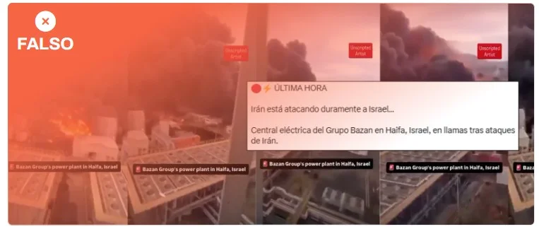 No, este vídeo no muestra un ataque iraní a una refinería de Haifa (Israel): son imágenes de una central eléctrica en Yemen en 2025