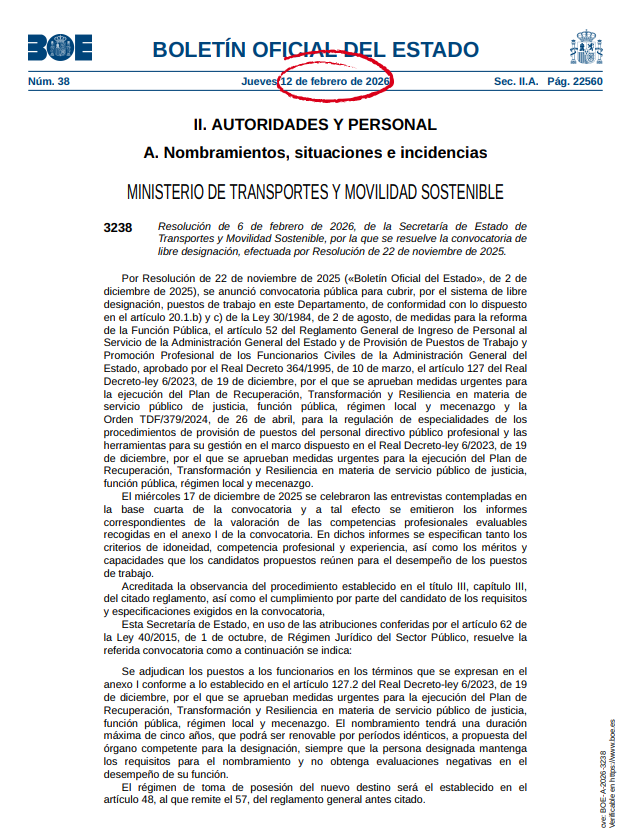 Pero su propio nombre lo contradice: “Observatorio para la coordinación y prevención de crisis y la atención a las víctimas de accidentes e incidentes en los modos de transporte”. También el real decreto que lo constituye cuando cita la “realización de estudios preventivos” entre sus funciones. Aunque el puesto de subdirector general, figura encargada de estos estudios según la convocatoria de Transportes, no estaba ocupado cuando ocurrió el accidente de Adamuz (18 de enero de 2026). Desde la creación del Observatorio en julio de 2025, este puesto estuvo vacante seis meses, porque no se nombró hasta el 6 de febrero. Su publicación en el BOE fue el 12 de abril, por lo que, como pronto, tomó posesión del cargo al día siguiente.